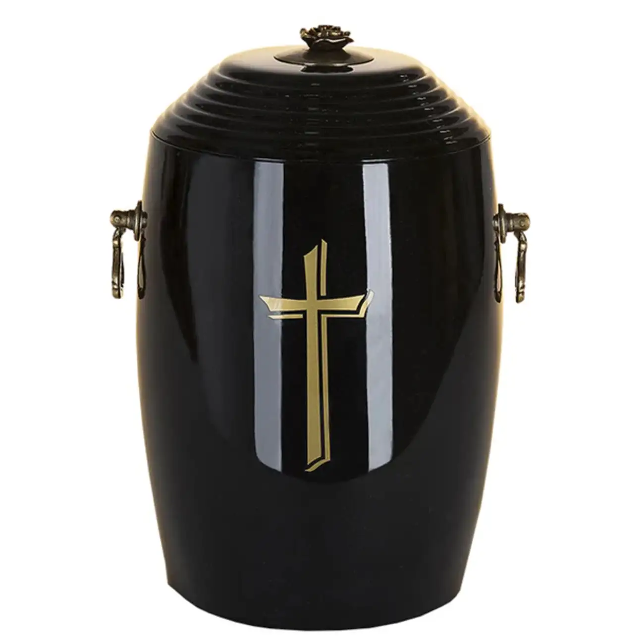 Fabriquée en composite de haute qualité, cette urne offre robustesse et durabilité. Les poignées latérales en métal assurent une manipulation facile et sécurisée. Le couvercle finement travaillé, surmonté d’un motif floral, ajoute un détail raffiné. 🌹