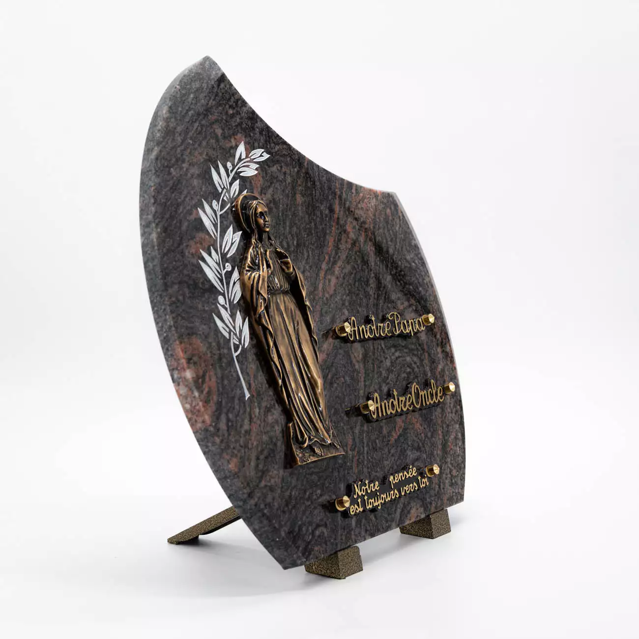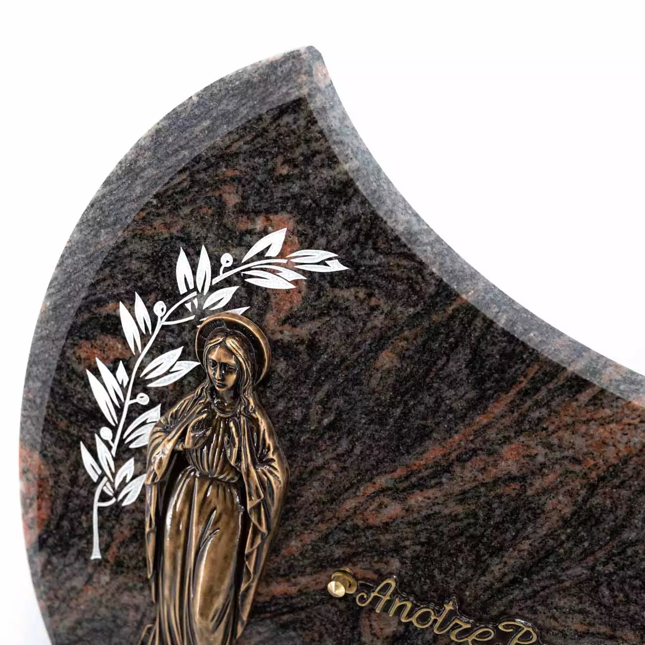 🕊️ Offrez à vos proches disparus un hommage empreint de spiritualité et d’amour avec cette plaque funéraire en granit finement décorée 🙏. Elle associe un bronze religieux de la Vierge Marie à une gravure végétale symbolique, évoquant la paix, la foi et le souvenir éternel.